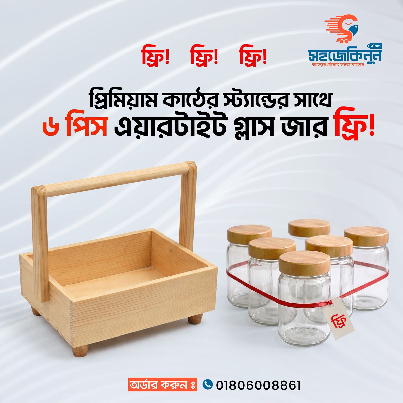 🔥অফার মূল্য: মাত্র ১২৯০ টাকা প্রিমিয়াম কাঠের স্ট্যান্ড সাথে 🛑(৬পিস কাচের জার) ফ্রি! ফ্রি!🛑
